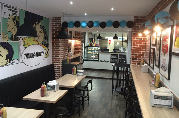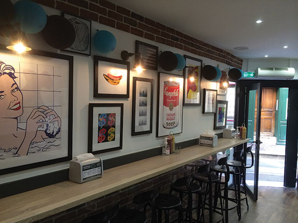 Inspiré de l’atelier The Factory d’Andy Warhol situé à NYC, dont le restaurant porte le numéro en guise de nom, Martin Seiler, le nouveau gérant du lieu, propose à la carte 4 burgers frais et goûteux à consommer sur place ou à emporter. Imaginé par le restaurateur strasbourgeois Cédric Moulot, le concept est simple : dans un décor des années 60, véritable clin d’œil à la culture pop, le choix est délibérément réduit pour ne se concentrer que sur la qualité et la fraîcheur de produits simples. Un bun mœlleux et exclusif entre pain et brioche, un steack frais et généreux, des frites non surgelées, le tout cuit à la minute où vous passez commande. Le plus: vous choisissez votre cuisson, votre sauce et garnitures. Parmi les trois formules, j’ai choisi le Greedy Pack (10,50 €) qui comprend burger, frites ou salade et boisson et opté pour le Bacon Cheese Burger. Le steack épais recouvert de cheddar coulant surmonté de vraie poitrine fumée, le tout agrémenté de tomates, oignons et pickles coupés du jour s’avère être un vrai plaisir. Une recette sans prétention mais efficace. Le burger est aussi servi dans un papier astucieux, sorte de « charlotte » coulissante évitant que le jus et les ingrédients ne s’éjectent du bun durant la dégustation ! Le must : les frites chaudes revêtues de cheddar fondu sont vraiment irrésistibles !