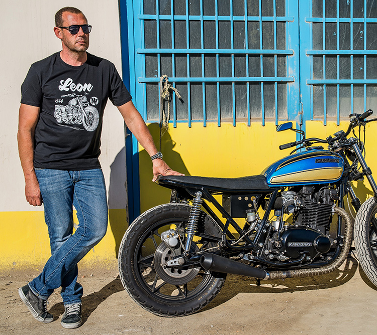 Une atmosphère mécanique, dans laquelle figure aussi sa marque, Léon, une collection de tee-shirts en coton 100 % biologique, qu’il a créée en 2015. Loin d’être une pièce détachée dans l’habitacle rétro de ses boutiques, on retrouve à travers les imprimés originaux des vêtements qu’il élabore avec son équipe de graphistes et de designers, tout ce qui l’a conduit jusqu’ici.
