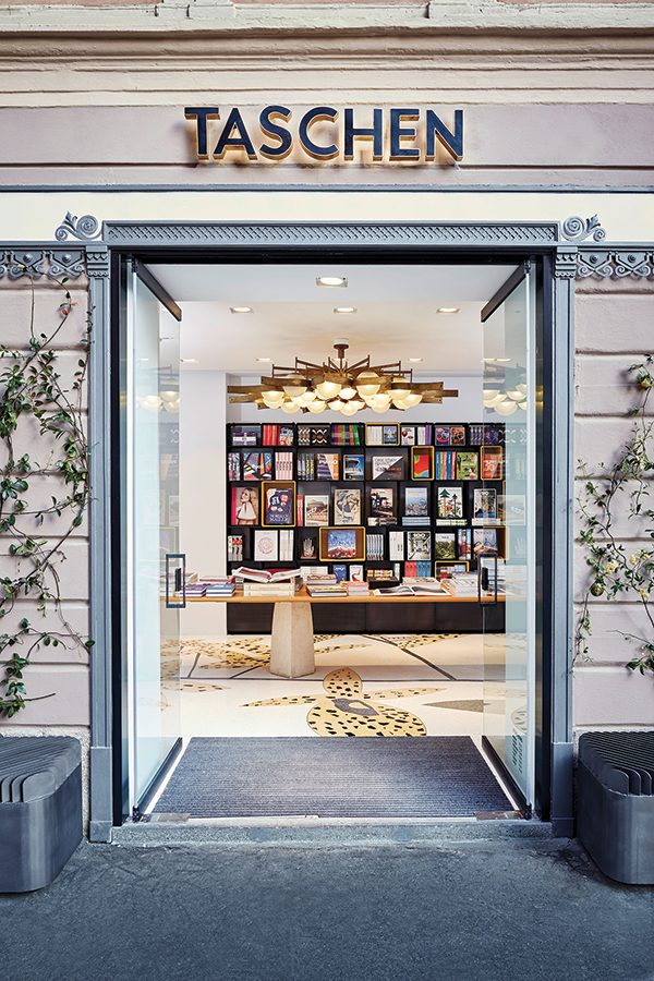 Il faut visiter le store Taschen, 120m2 sur deux niveaux. Dès l’entrée, votre regard est captivé par un lustre imposant de Gio Ponti, dessiné tout spécialement pour l’Hôtel Parco dei Principe dans les années 50. Le premier étage est exclusivement réservé aux éditions limitées. Admirez, au passage, les créations personnalisées par le designer Marc Newson pour Milan au rang desquelles figurent les bibliothèques modulaires en acier poli avec incrustations en résine jaune vif ainsi que de grandes vitrines en verre conçues pour l’exposition des volumes XL des Collectors Taschen. Une déco sublime, vous l’aurez compris, avec un sol en terrazo vénitien, décoré d’un paysage tropical conçu par l’artiste américain Jonas Wood sur les deux étages. Des contours en laiton délimitent les multiples éléments de feuillage et de faune prismatiques. Et cerise sur le gâteau, une alcôve pensée comme un coin de lecture au calme rejoint les deux étages. Magnifique, l’escalier multicolore est lui aussi en terrazo vénitien. Taschen _Via Meravigli 17