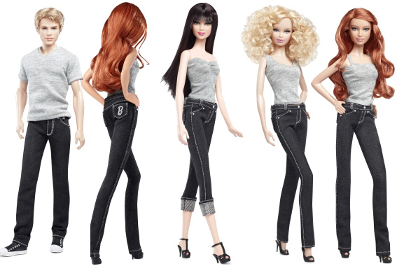 On retrouve douze nouvelles poupées lookées en slim, flare ou encore 7/8. Du jeans brut au délavé, il y en a pour tous les goûts. On aime aussi les coiffures ultra glam’, aux boucles seventies. Qu’on se le dise, la Barbie 2011 a du chien ! Elle arbore même un joli logo B sur sa fesse. Elle aussi se passionne pour les jeans griffés ! On aime le côté cosmopolite des 12 nouvelles poupées, rousses, blondes, brunes, black… même Ken n’a pas trop l’air débile ! La bonne nouvelle, c’est que nos fillettes ne nous casseront plus les pieds avec barbie princesse. La mauvaise, c’est qu’on va se remettre à envier et à recopier celles qu’on ne jalousait plus depuis longtemps…