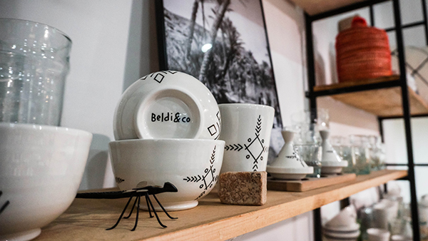 [dropcap text_color= » » background_color= »dark »]C[/dropcap]’est au pied de la Vieille Charité, dans le quartier du Panier, que l’embarquement pour Marrakech se fait ! Ici, chez Beldi & Co, on rentre dans un souk raffiné (oui, ça sent bon), coloré et design. Hanen Hatri, la maîtresse des lieux, nous transporte là-bas, au-delà des frontières. Architecte et décoratrice d’intérieur de profession, elle propose ici des créations berbères au design contemporain soigneusement sélectionnées lors de ses escales marocaines. Créative, elle imagine et crée également ses propres collections. On craque notamment sur sa nouvelle gamme de poteries blanches inspirées des tatouages traditionnels berbères. Mais Beldi & Co, c’est bien plus encore ! Le midi, Hanen transforme sa caverne d’Ali Baba en bar à salades, et le soir (sur réservation), place aux délices culinaires marocains. Plus besoin de voyager, c’est le Maroc qui vient à nous !