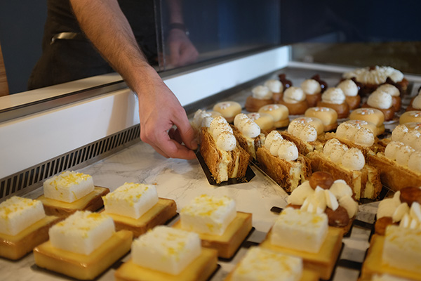 [dropcap text_color= » » background_color= »dark »]À[/dropcap] La Ciotat, les becs sucrés se réjouissent de l’ouverture du salon de thé (et pâtisserie) Carré Noir de Kevin Violante, l’enfant du pays. Tous connaissent les propositions gourmandes de ce pâtissier inventif à qui ils font appel pour leurs événements privés. Désormais, brioches aux pralines roses, tropéziennes aux agrumes, mille-feuilles verticaux, cookies moelleux ou encore navettes ciotadennes seront à déguster sur place, accompagnés d’un chocolat chaud maison ou d’un thé. Installé à une table du patio végétalisé, vous pourrez observer de l’autre côté de la verrière l’équipe qui s’affaire dans le labo, d’où s’échappent des effluves de noisette et de cacao. Mais si le soleil d’hiver vous le permet, préférez la terrasse avec vue sur la mer. Et comme chez ToutMa on adore ça… on a posé la question cruciale : peut-on bruncher le dimanche ? La réponse est oui et la réservation plus que recommandée !