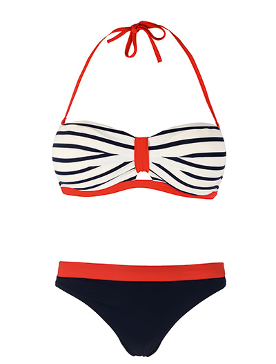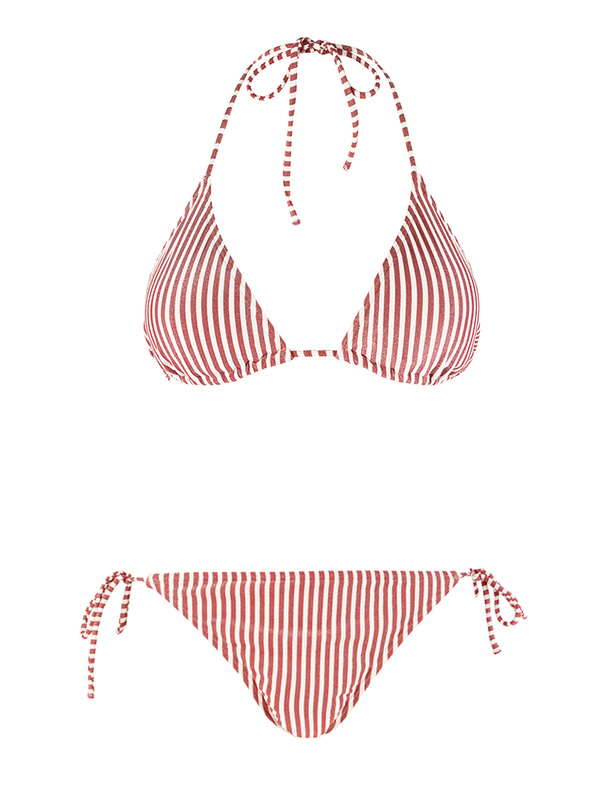 7. Maillot de bain rayé rouge, haut, 35 € et bas, 30 €