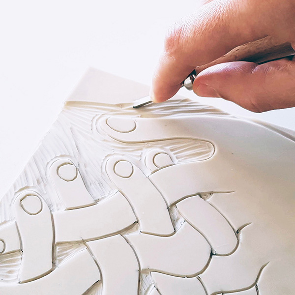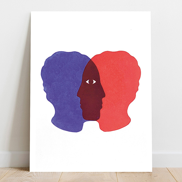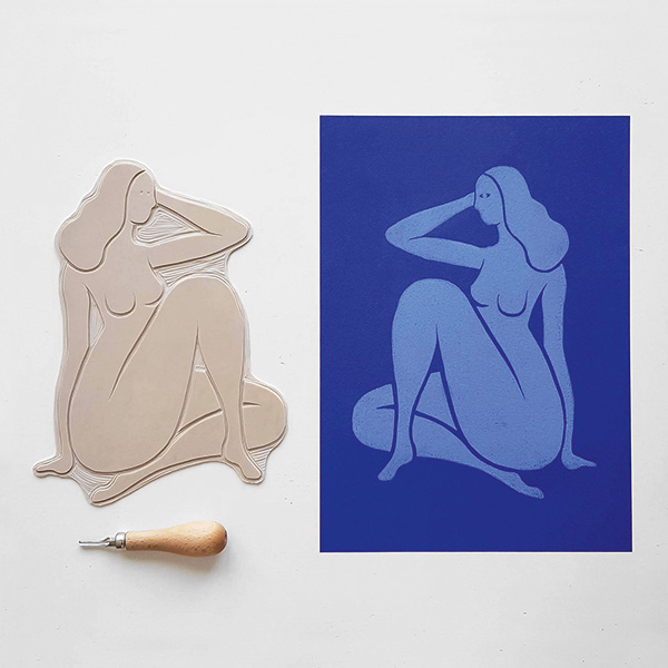 [dropcap text_color= » » background_color= »dark »]D[/dropcap]avid Vanadia n’est pas un illustrateur comme les autres. À l’instar de Matisse, qu’il aime et qui l’inspire, il aime pratiquer la linogravure, une discipline qui lui permet de sculpter et d’imprimer ses dessins en éditions limitées et d’entrer en relation avec la matière. Il aime particulièrement le contact avec les gouges, l’encre, le rouleau et le papier. Chaque estampe est unique selon la façon dont l’encre se dépose sur la feuille et c’est exactement cette singularité qu’il recherche. Cet admirateur de Magritte et de Miró puise aussi son inspiration dans la littérature philosophique et se dit fasciné par le lien qui unit l’homme à la nature.