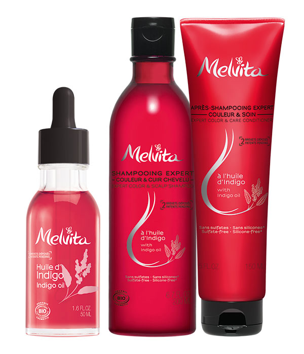 Gamme à l’indigo pour cheveux colorés et/ou les cuirs chevelus sensibles.