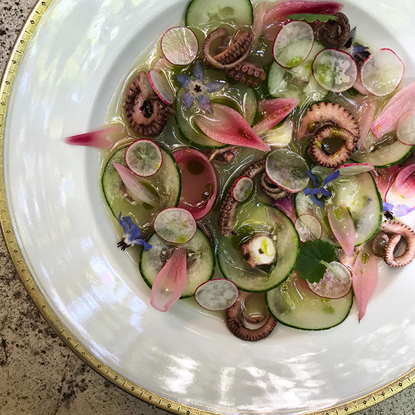 Elle y rencontre Oliver Amsellem et Charlotte Brunet, les fondateurs du concept store Jogging. Ils lui confient les clefs de leur jolie cour intérieure, arborée et fleurie, de la rue Paradis, où elle cuisine tous les midis (en plus des brunchs israéliens du samedi) d’avril à septembre 2018. Un lieu unique en son genre et un cadre enchanteur « où les artistes sont mis en avant au même titre qu’un designer de mode ou qu’un joailler et où le retour des clients est précieux », nous précise Ella. Elle y sert « une cuisine de saison, des produits sains qui se préoccupent de la santé et du bien manger. Une cuisine gourmande, généreuse et haute en couleur qui prône l’utilisation du légume ». Elle aime également travailler la viande et le poisson de façon raisonnée et privilégie des produits de belle qualité dont elle connait la provenance et les conditions d’élevage. Cette expérience lui fait l’effet d’un incubateur où elle crée à sa guise une cuisine qu’elle aime.