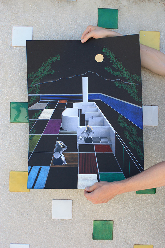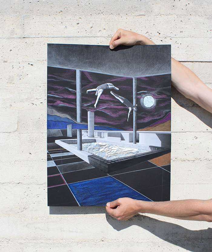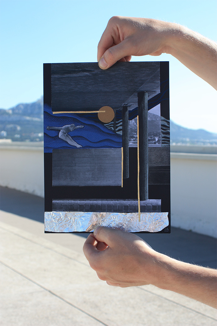 « En suspension, entre mouvement des corps et architecture, ils et elles plongent dans la lumière, se prélassent sous des ciels dorés et nagent sur fond de roches, loin devant les montagnes »… Jusqu’au 31 août, on file découvrir l’exposition Les Baigneurs modernes consacrée au travail de Marie Bonnot, architecte et plasticienne. La Galerie Kolektiv 318 nous initie avec cette série de collages au style singulier de l’artiste, qui se nourrit de la lumière et de l’architecture de Marseille, sa ville d’attache. Dans leur ballet, ses baigneurs modernes ré-enchantent le monde, entre onirisme et esthétique constructiviste. Une épopée contemporaine sous un solstice de béton qui questionne l’architecture marseillaise. Entre ombre et azur, quel autre lieu que l’emblématique Cité radieuse – Le Corbusier, pour faire vivre ces personnages ? Se servir de l’héritage d’un édifice pour travailler notre imaginaire… Une idée pour s’évader, et se rappeler à quel point la cité phocéenne est riche de ses paradoxes.
