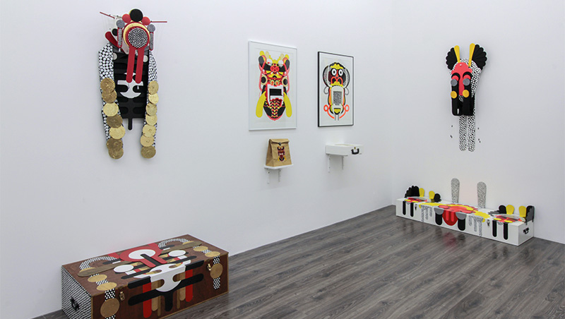 Un autre ensemble, intitulé Le Chaos très organisé tenu par cette petite chose, composé de dessins à l’encre de Chine, est né dès les premiers jours du confinement. Il évoque très directement l’angoisse de l’artiste face au flot inédit d’informations… Ces œuvres, usant d’un vocabulaire restreint de formes géométriques minimales, graphiques, expriment d’une manière simple et extrêmement efficace le combat de tout un chacun pour une survie mentale nécessaire. Un univers intriguant à découvrir dans une galerie qui tient sa promesse : nous surprendre !