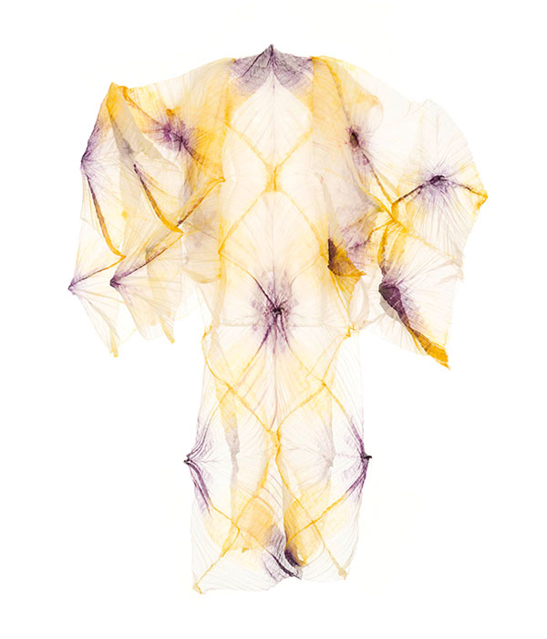 Sur 550 m2 et deux salles d’exposition, une dizaine d’artistes exposeront leurs œuvres, tour à tour aériennes, avec les tissus teints d’Ysabel de Maisonneuve, rustiques (on pense à la démarche très orientée « matière première » de Veronika Moos) ou encore purement spectaculaires, comme les robes de 2 mètres de Dianna Brennan, judicieusement suspendues dans le puits de la galerie, résurgence du passé naval du quartier.