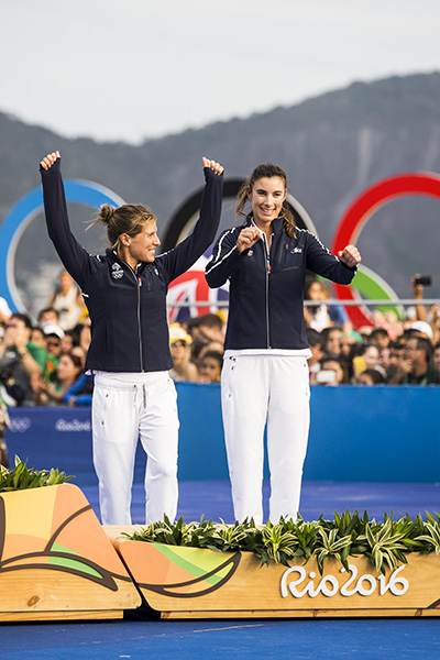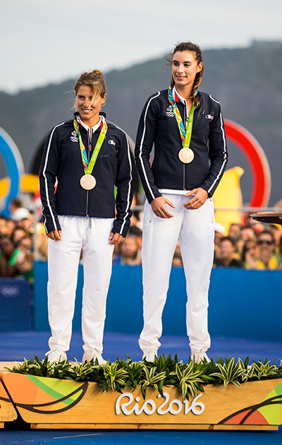 HD : Je me suis associée à plusieurs barreuses dont Emmanuelle Rol avec qui, en 2010, nous devenons championnes d’Europe. En 2012, nos routes se séparent après avoir manqué notre qualification aux J.O. de Londres. À ce moment-là, j’ai eu envie de tout arrêter. Mais, un mois après, j’avais de nouveau cette flamme, cette envie de repartir. En 2013, Camille Lecointre, une barreuse avec laquelle nous étions souvent en compétition et qui avait fini quatrième aux J.O. de Londres, recherchait une équipière. Elle m’appelle et me demande si je suis disponible pour les Jeux Olympiques de Rio en 2016. J’ai accepté assez vite car depuis plus d’un an j’étais à la recherche d’une coéquipière ! On s’est beaucoup entraînées entre Marseille, Brest et l’étranger. On n’a pas fait grand chose d’autre pendant cette période. Et, en 2016, nous remportons la médaille de bronze à Rio…
