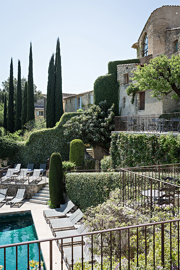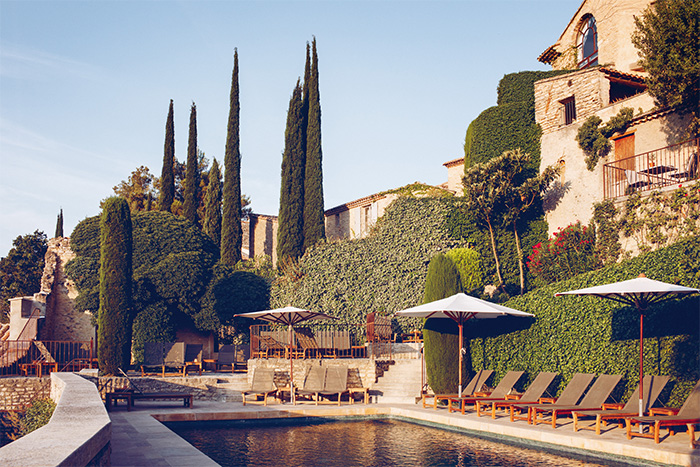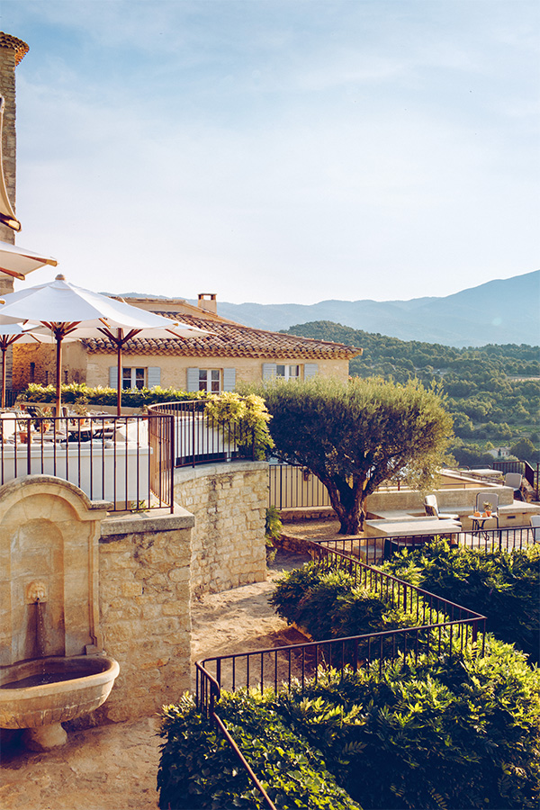 [dropcap text_color= » » background_color= »dark »]C[/dropcap]achette 5 étoiles dans un petit village du Vaucluse, l’hôtel Crillon le Brave garantit à ses clients un séjour luxueux et apaisant à moins de deux heures de Marseille. On y découvre un environnement intimiste naturel, sublime et authentique au milieu de bâtisses des XVIIe et XVIIIe siècles. Racheté au printemps 2017 par le groupe hôtelier Maison Pariente, Crillon le Brave s’articule aujourd’hui autour de neuf magnifiques maisons dispatchées dans le village. Le décorateur Charles Zana et le cabinet Elias Guenoun Architecture ont su allier avec brio les codes esthétiques éternels de la Provence et la modernité. Complètement hors du temps, on entend partout dans l’hôtel les cloches de l’église retentir. On se plaît à bouquiner devant la charmante piscine tout en admirant de temps en temps le Mont Ventoux.