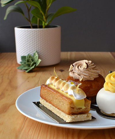[dropcap text_color= » » background_color= »dark »]V[/dropcap]oici une adresse que l’on essaye par curiosité ou conviction et où l’on revient pour le goût. Raffinées et alléchantes, les créations intégralement vegan de Quentin, pâtissier-chocolatier, n’ont rien à envier à leurs homologues plus classiques. Cependant, chez Instant V, vous ne trouverez pas de framboises en hiver ni d’agrumes en été. La saisonnalité est reine tandis que laits d’oléagineux, huiles végétales et aquafaba remplacent crème, beurre et œufs. Entre le Vénus citrus, le mille-feuille au matcha et le Newton pommes et noisettes, notre cœur balance et on a hâte de découvrir la carte de printemps ! La maison propose également des viennoiseries 100 % bio et vegan, le bon plan pour des petits déjeuners et des brunchs éthiques. Enfin, Quentin et sa femme Mathilde, dont le joli sourire vous accueille en boutique, encouragent le mode de vie durable : une ristourne vous sera gracieusement accordée si vous venez avec vos propres contenants. Écolo et délicieux, qui dit mieux ?