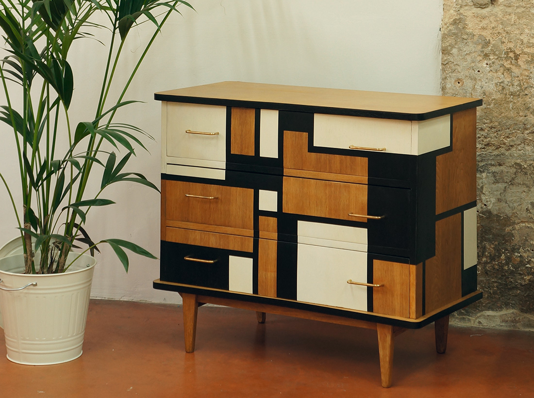 [dropcap text_color= » » background_color= »gray »]F[/dropcap]loriane Seghieri, passionnée de décoration, est passée par des études d’architecture d’intérieur puis de photo avant de trouver sa voie : réaliser des créations originales à partir de meubles récupérés, et c’est magnifique ! Vous pouvez soit lui apporter un vieux meuble à retaper, soit lui acheter un meuble qu’elle a déjà transformé. Mais elle peut aussi chiner pour vous la pièce que vous recherchez avant de la transformer. Travaillées avec une forte influence graphique mais de manière artisanale, les créations de Floriane ont toutes beaucoup de caractère. Voilà comment donner une nouvelle vie aux objets en les rendant encore plus beaux qu’avant !