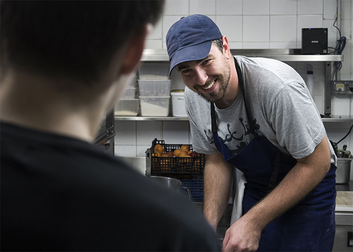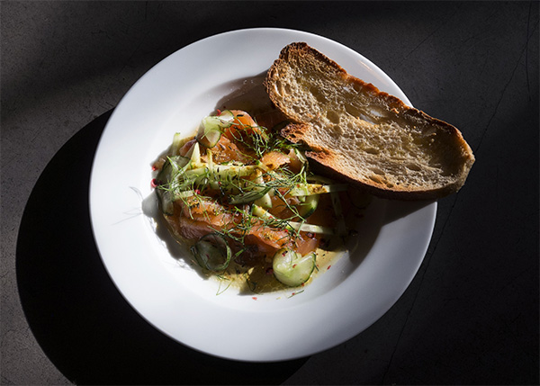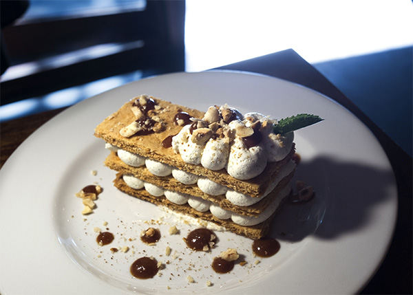 [dropcap text_color= » » background_color= »dark »]I[/dropcap]nstallé sur la mythique terrasse du Cours Julien, on s’adonne sans complexe à une activité estivale par excellence : on lambine. Mais attention, pas n’importe où ! À la Baleine, ciné-bistrot chic et rétro. Aux fourneaux, le chef Alan Kloniecki s’active avec son second Xavier Maisonnier pour nous concocter une carte à l’esprit bistrot revisité, notamment grâce aux épices. Résolument méditerranéens, les plats invitent au voyage, à la manière du baba ghanoush, servi avec un œuf poché et du pain kabyle, qui nous dépose directement sur des rives orientales ; ou encore de l’effiloché d’agneau sur son lit de paysanne de légumes, boulgour et sarrasin. Coup de cœur pour le mille-feuille vanille, caramel au beurre salé et noix de pécan. En dépit des apparences, ce dessert s’avère frais, aérien et pas du tout écœurant. C’est une folie !