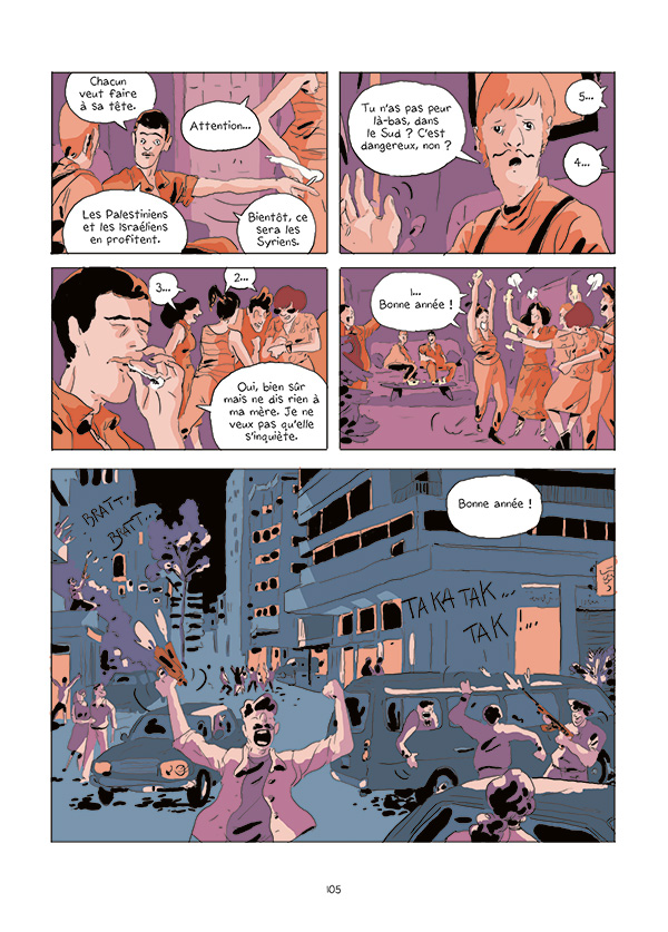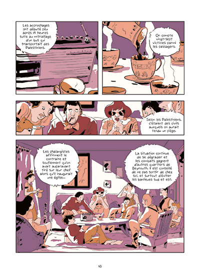 [dropcap text_color= » » background_color= »gray »]B[/dropcap]eyrouth, 1974, cela fait dix ans que la famille Naggar a fui une Égypte devenue autoritaire après l’attaque de Suez et goûte, entre la librairie Papyrus du père, la troupe théâtrale de la mère et les virées en mobylette des enfants, à une dolce vita libanaise sur le point de connaître ses derniers mois. Au détour d’une case, presque l’air de rien, surgit un revolver (il s’agit « juste » d’autoprotection) : le trait délié de Gaël Henry se crispe avec ses personnages. Retour à la normale, les enfants alanguis passent des vinyles dans la chambre de l’aîné. On frappe à la porte, c’est une lettre officielle : la conscription… Cette histoire, plus ou moins autobiographique et tout en subtilité, nous raconte l’intrusion de la guerre dans le quotidien d’une famille aussi authentique qu’attachante, entre tension et indolence, violence et tendresse. Un récit doux-amer brillant !