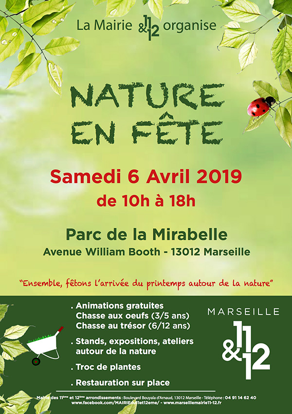 [dropcap text_color= » » background_color= »dark »]C[/dropcap]’est la 4e édition de Nature en fête à Marseille et c’est idéal pour fêter le retour du printemps ! Depuis le 25 février et jusqu’au 3 juin la Mairie des 11eet 12earrondissements fête la nature à l’heure où nos jardins et nos balcons fleurissent… Une programmation chaque année plus riche avec de multiples événements qui vous attendent pendant plus de deux mois. Tout d’abord des conférences sur des sujets aussi variés que la prévention des incendies dans les calanques, les eaux de Marseille, la phénologie ou la nourriture et les pesticides, mais aussi deux expositions, l’une sur les oiseaux de Marseille et l’autre sur des photographies des récifs du Prado. Nous aurons également droit à des concours, avec notamment « Le plus beau jardin des 11eet 12e ». Ne ratez surtout pas le fameux « Troc Vert », où il s’agit d’échanger gratuitement toutes sortes de végétaux sous diverse formes (plantes, boutures, graines…), qui se déroulera le 6 avril au parc de la Mirabelle ! Encore une fois de nombreux stands et animations (ferme pédagogique et présentation du métier d’apiculteur, entre autres) dédiés aux enfants comme aux adultes vous permettront de passer un moment agréable en famille, dans un cadre privilégié et en vous rapprochant de la « belle verte », car ces manifestations ont toutes pour objectif de sensibiliser le public à la protection de l’environnement. Et pour ce faire quoi de mieux qu’une grande fête dans la nature ?