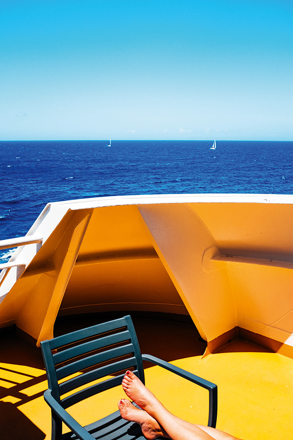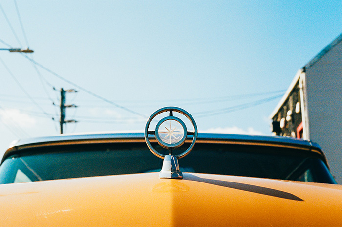 Jean-Mathieu Saponaro est un jeune photographe martégal qui a nourri sa rétine de nombreux voyages et d’influences plurielles. Il a vécu à Aix-en-Provence, à Paris et à New York, mais sa sensibilité est restée provençale. Une affaire de lumière, une histoire de couleurs… Ses inspirations sont pourtant très évidemment américaines. Il y a chez lui du Robert Frank (le plus américain de tous les Suisses) : dans ses gros plans de bolides, dans son goût pour les diners et les regards lancés à la dérobée, à travers l’encadrement d’une fenêtre ou d’une porte. Il y a aussi du Walker Evans dans son sens de la composition, son jeu sur la typographie et son intérêt pour les bâtiments industriels délabrés, supports de messages publicitaires hors d’âge apposés sur des linéaires de briques bon marché estampillées « Révolution industrielle ». On soupçonne enfin du Philip-Lorca diCorcia dans ses portraits de « gens normaux » et son sens de la lumière (artificielle notamment). Il partage avec ce dernier la couleur qui manque aux deux autres. Et c’est là que la rencontre de deux univers se fait. Diffuse et cinématographique chez l’Américain, la lumière valorise volontiers chez le Provençal des effets color-block puissants et s’invite dans des scénographies balnéaires. Alors, on ne sait plus sur quel continent on se situe. On cherche des indices de lecture sur la poupe d’un bateau, sur une publicité dans un coin de l’image ou sur le logotype d’une voiture américaine rutilante (forcément !)… Une seule chose est certaine, dans cette palette chromatique, on est bien chez Saponaro.