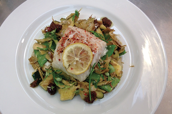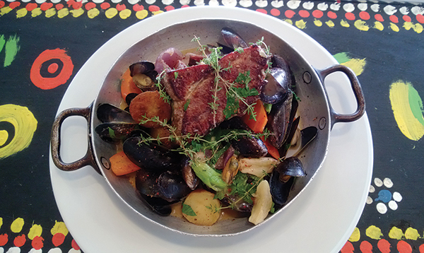La Passarelle est un restaurant méditerranéen bio entre le Vieux-Port et Saint-Victor avec un jardin potager, une fontaine à poissons et un terrain de boule : une adresse unique et incontournable ! Philippe et Patricia, mari et femme, dirigent cette affaire « de famille » avec une de leur fille en cuisine et une autre au service. La cuisine aussi est familiale tout comme le mobilier et la déco qui viennent des grands-parents de Patricia. « J’aime la cuisine de mémoire aussi, tout en innovant » confit-elle. Effectivement on y déguste autant des plats traditionnels à la plancha que des fleurs qui accompagnent les salades et les fromages ! Tous les mercredis matins, Patricia va faire son marché bio au cours Julien mais c’est juste pour « le petit plus » car deux fois par semaine elle est livrée pour ses fruits et légumes directement par un agriculteur d’Ollioules : « La Ferme des olivades » qui est une Amap (Association pour le maintien d’une agriculture paysanne). Dans leur jardin potager, ils font pousser leurs herbes, pour le reste « c’est du visuel », précise Patricia : « on passe 300 kilos de légumes par semaine, on ne pourrait pas faire pousser tout ça ici » ! Les fromages viennent du marché bio de Pertuis, la viande de la bonne boucherie Monaco, le poisson de la ferme piscicole bio du Frioul… L’hiver le restaurant pratique une ouverture « raisonnée » et sur commande, mais en saison, c’est ouvert 7 jours sur 7 avec parfois jusqu’à quatorze employés, tous des jeunes qui sortent des écoles de cuisine car ici tout le monde doit être concerné par la qualité des produits qui sont proposés !