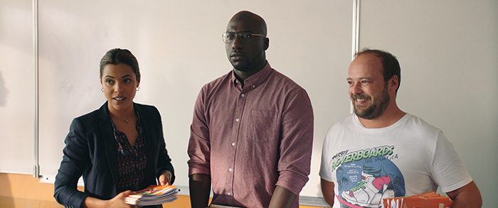 [dropcap text_color= » » background_color= »dark »]A[/dropcap]u niveau du timing, c’est déjà un 10/10, et on aurait presque envie de ressortir trousses et cartables pour reprendre le chemin de l’école tant le casting du nouveau film de Grand Corps Malade et Mehdi Idir (qui avaient déjà collaboré à la réalisation de Patients) fait mouche. Sur le papier, on pourrait croire à une énième variation sur Esprits rebelles, qui avait fait du « drame scolaire » un genre à part entière dans les années 1990 : on suit le parcours de Samia (toujours aussi convaincante Zita Hanrot), CPE fraîchement nommée dans un collège de Seine-Saint-Denis. Rien de nouveau sous le soleil, sauf que, précisément, les réalisateurs connaissent leur sujet et en parlent avec autant de justesse que de tendresse : la gouaille des élèves, la réalité souvent difficile du terrain et les petites absurdités du quotidien, le tout sans jamais se montrer ni trop naïfs ni trop graves. Le jeune Liam Pierron, qui incarne Yanis, un élève désabusé et insolent, crève littéralement l’écran. La réalisation dans son ensemble est simple, mais diablement efficace, et réussit à dépasser le cadre un peu convenu du « film de collège en zone sensible » pour toucher véritablement le spectateur. On rit, on s’attendrit et on réfléchit devant ce numéro d’équilibriste, oscillant entre drame et comédie, qui sonne très juste.