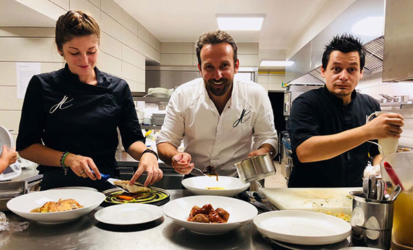 [dropcap text_color= » » background_color= »dark »]L[/dropcap]e bouche à oreille a très vite fonctionné après la reprise de l’établissement l’été dernier. Jérémy et Laetitia, les nouveaux propriétaires, ont su redonner vie et saveurs à cette charmante demeure provençale du xviiie siècle. Le chef, Jérémy Turgon, y affole les papilles des gourmands de Carry et de toute la Côte bleue. Sa rigueur, son souci du détail et son perfectionnisme, acquis au fil de ses expériences avec des chefs étoilés (Richard Coutanceau, Bernard Loiseau), lui permettent désormais de jouer des produits, d’interpréter les classiques à sa manière. Sa cuisine d’inspiration méditerranéenne n’est composée que de produits frais de saison. Ravioles de canard confit aux champignons des bois et cappuccino de cèpes rivalisent avec les noix de Saint-Jacques snackées. Sans compter la délicieuse blanquette de veau allégée, truffes noires, riz de Camargue. Un vrai régal dans un cadre ravissant, à 200 m du petit port de Carry.