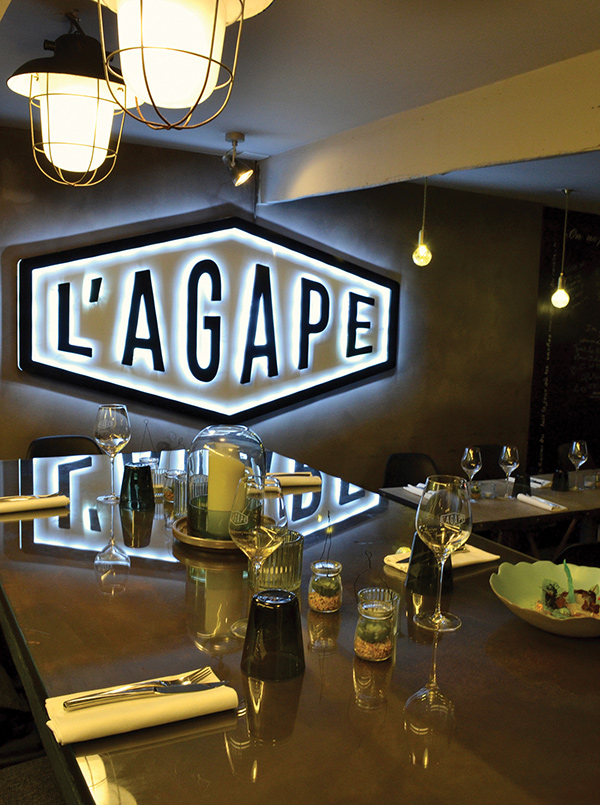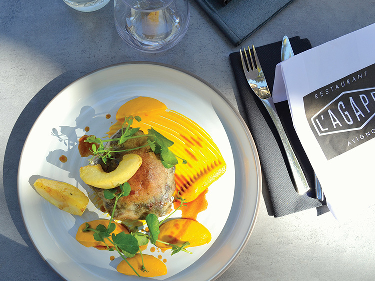 [dropcap text_color= » » background_color= »gray »]D[/dropcap]epuis trois ans, L’Agape fait le bonheur des Avignonnais et des touristes sur la jolie place des Corps-Saints. Avec exigence et convivialité, Anne et Julien Gleize s’amusent à casser les codes de la cuisine gastro dans ce décor entre Années folles et style indus’. On vous recommande chaudement de réserver la table d’hôtes prévue pour deux à six couverts. En léger surplomb, elle offre une belle vue sur la cuisine ouverte. Laissez-vous tenter par la pastilla de canard aux épices douces, un plat très cocooning avec sa purée de carottes fondante que vous ne manquerez pas de saucer avec le bon pain réalisé par le pâtissier qui s’occupe également des desserts. Côté sucré justement, le crémeux au chocolat avec sa crème stracciatella et son chocolat chaud vous fera oublier les frimas de l’hiver, on vous le promet !