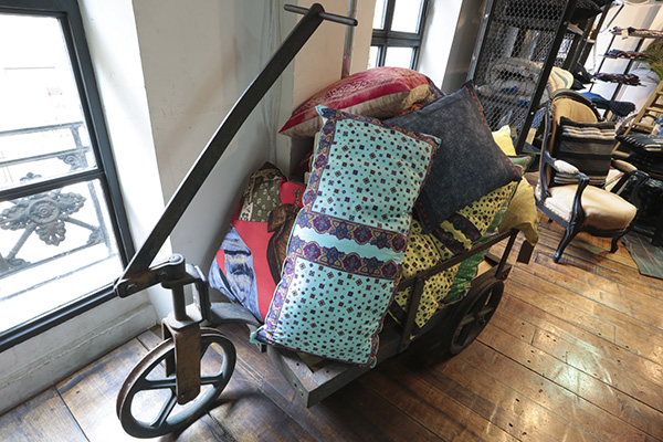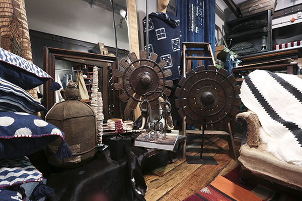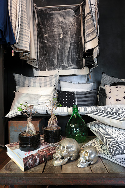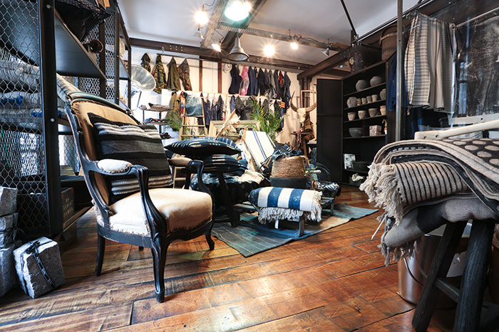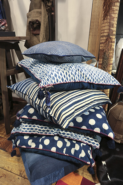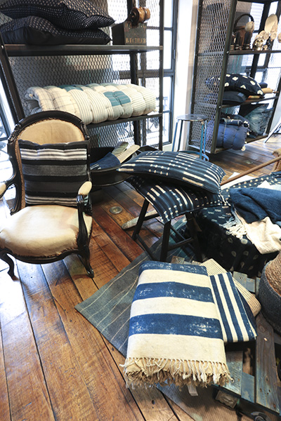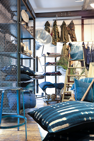 [dropcap text_color= » » background_color= »gray »]E[/dropcap]n matière de mode, la famille Gassa a toujours eu du goût. Connue pour Royal Navy, boutique multimarque qu’on affectionne depuis longtemps, mais également pour avoir créé la marque masculine Unity, cette team stylée exploite désormais sa créativité dans l’univers de la maison. Situé juste au-dessus de Royal Navy, L’Atelier du quartier cache des pièces d’intérieur remarquables. En suivant la logique de la marque Unity, elles s’inspirent de l’esprit fripes et surplus militaire… Par exemple, les rideaux bleu indigo sont un assemblage de patchs. Ici, on mélange sans chichis de vieux tissus, qu’ils soient japonais (bono), irlandais (shetland), ou autres… Tout est artisanal et vous ne trouverez aucun tissu imprimé dans cet appartement ! Le sur-mesure est également envisageable. On aime les grands cousins indigo et les sets de table originaux. Sans oublier que, clou du spectacle, on passe par l’atelier de confection pour découvrir le cœur de l’appartement.