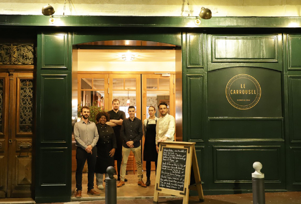 [dropcap text_color= » » background_color= »dark »]A[/dropcap]u cœur du quartier Saint-Victor, dans la festive rue Sainte, loge désormais Le Carrousel, surnommé affectueusement le « bistrot du coin » par les habitués. Dans une ambiance résolument rétro et cosy, entouré de tapisseries fleuries et d’objets chinés, on se laisse séduire par une ardoise courte, qualitative et de saison. Au menu, un délicieux et original « royal œuf cocotte » parfumé au lard, suivi d’un authentique sauté de veau aux olives servi sur son riz pilaf… Carnivores affamés, l’entrecôte limousine est faite pour vous ! En fond sonore, les tubes les plus cultes de la variété française finissent de nous replonger dans le passé, à l’époque des bistrots d’antan…
