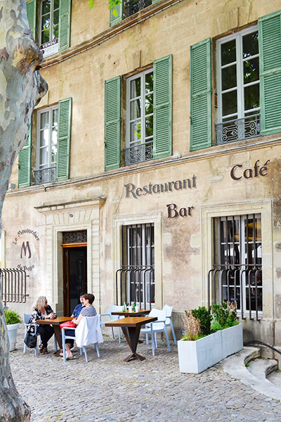 [dropcap text_color= » » background_color= »gray »]S[/dropcap]i Jean-Rémi Joly, chef au Moutardier du pape, ne travaille pas avec « la cuiller de buis jaune et l’habit de safran » évoqués par Alphonse Daudet, il n’en maîtrise pas moins les codes de la cuisine provençale. Bourride du pêcheur ou pieds paquets d’agneau feront le bonheur des amateurs tandis que le foie gras au Vacqueyras comblera les papilles audacieuses… Côté vins, Le Moutardier du pape possède une carte fournie qu’Emmanuel Perrin, propriétaire du lieu, ne manquera pas de vous détailler, depuis le petit blanc du Gard servi au verre jusqu’aux bouteilles de châteauneuf-du-pape grand cru. On se sent bien dans cette large bâtisse du xviiie siècle, l’accueil est chaleureux et l’ambiance familiale grâce au menu spécial « bambins ». Pour un repas ou le temps d’un café et d’une glace face au palais des Papes, voilà une adresse ensoleillée à ne pas manquer cet été !