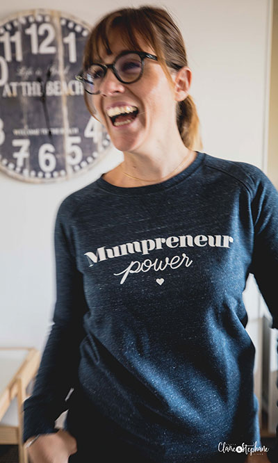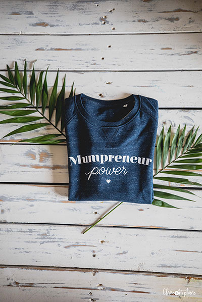 [dropcap text_color= » » background_color= »dark »]G[/dropcap]raphiste de formation, Julie Chéreau fête ses dix ans en tant que chef d’entreprise. Dix ans en freelance à la maison. Elle adore insuffler de la gaieté dans le quotidien. Aussi conçoit-elle des petites affiches ou des cartes postales agrémentées de citations positives qu’on peut placer facilement dans des recoins familiers et stratégiques (le bureau, le miroir de la salle de bains, le frigo…). Il y a deux ans, elle a son premier enfant mais voilà, Marin a le fameux RGO (reflux gastro-œsophagien). Il ne dort pas… Fatigue et déprime la font réfléchir : comment concilier ses différentes casquettes ? L’idée du Mumpreneur Power venait d’éclore ! Julie décide d’interviewer des femmes comme elle, des mamans « Shiva » pour piquer leurs idées d’organisation, et surtout pour contribuer à la déculpabilisation. Les interviews (publiées le lundi) sont ouvertes à toutes les mamans entrepreneuses de France. Un sweat identitaire voit le jour, disponible en e-shop en édition limitée !