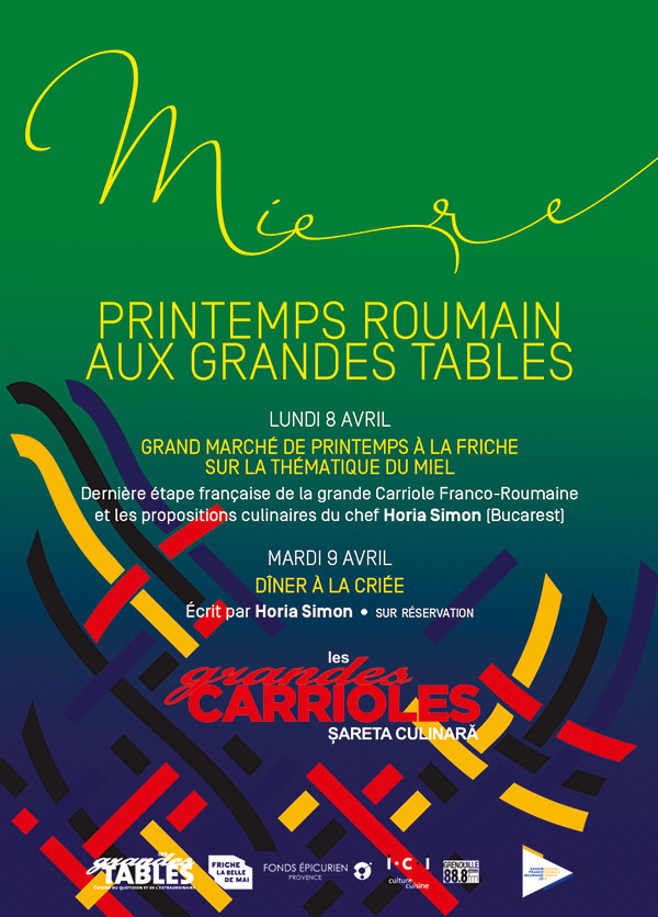 [dropcap text_color= » » background_color= »dark »]L[/dropcap]a Grande Carriole franco-roumaine, créée par Mihai Dumitrache et Maria Decu, les designers du studio MD-MD, s’arrête pour trois jours à Marseille. Le temps de faire découvrir aux Provençaux la cuisine d’Horia Simon, chef du Clubul Gastronomic Transilvan de Cluj, en Roumanie… Cap vers l’Est pour cette dégustation en musique au son de la trompette de Ghita Lorga et de la fanfare tzigane Vagabontu. Autour de la Grande Carriole un marché de producteurs sera présent à la Friche le lundi dès 16h, avec le miel comme produit mis à l’honneur. Mardi et mercredi, Horia Simon, le chef invité, proposera également un dîner où vous pourrez découvrir la tarte au miel, les truffes et la polenta roumaines… On vous conseille fortement de réserver car l’escale sera courte. Et dès le jeudi, la Grande Carriole embarque trois de nos chefs phocéens sur les routes de Roumanie : Emmanuel Perrodin, Georgiana Viou et Sébastien Richard !