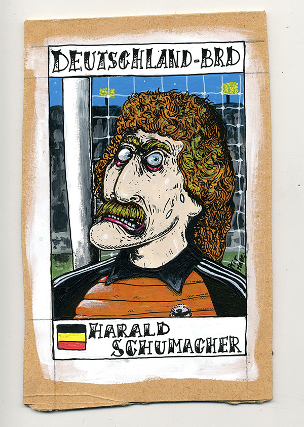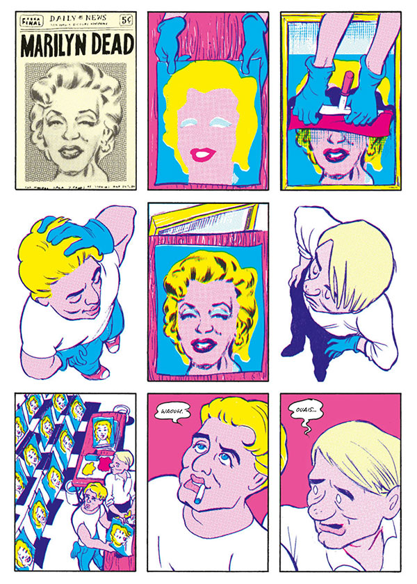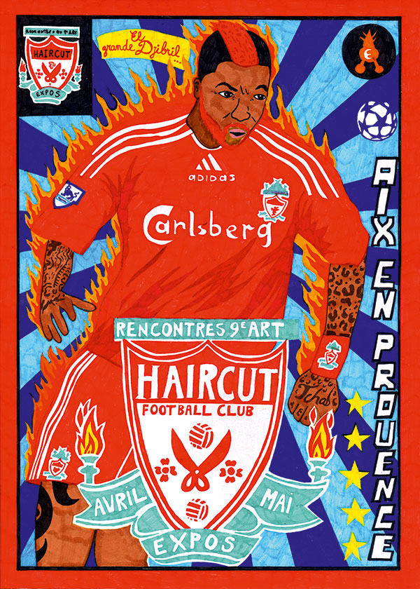 On retiendra, entre autres, l’expo consacrée au travail colossal du néerlandais Typex sur Andy Warhol (qui a donné lieu à une biographie protéiforme qui a fait sensation l’année dernière : Andy, Un conte de faits), d’inspiration très américaine, entre Crumb et Will Eisner. Mais aussi l’installation de Caroline Sury (auteur et cofondatrice du Dernier cri, maison d’édition underground marseillaise*), qui met en scène son dernier ouvrage en date : Un matin avec Mlle Latarte, l’histoire angoissante d’une relation amoureuse abusive racontée avec vivacité et fantaisie. N’évoquer que ces deux auteurs est en vérité assez injuste, tous mériteraient mention. Mais le name dropping a ses limites et, dans le fond, on ne voudrait pas vous gâcher la surprise de la découverte. Mention spéciale, tout de même, au pastiche collectif des cartes Panini dédiées aux coupes de cheveux des footballeurs. C’est pop, loufoque, un rien punk… bref, qu’est-ce que ça fait du bien !