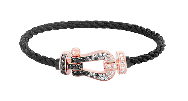8 FRED – Manille force 10*, Câble noir, diamants blancs, gris, noirs & or rose