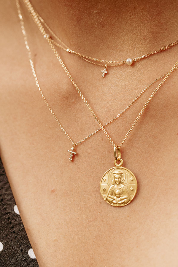 L’an dernier, Emmanuel Gonthiez a ajouté un joyau à sa couronne et s’est lancé dans la création d’une gamme de petite joaillerie qui mêle mode et spiritualité avec brio. Des bijoux fins et gracieux à accumuler avec harmonie, qu’ils soient bracelets ou colliers (en or 18 carats), élégants et/ou spirituels. La médaille de baptême, classique de la marque, se personnalise selon vos souhaits : des initiales de votre prénom à une gravure plus complexe, en passant par une date qui vous tient à cœur…
