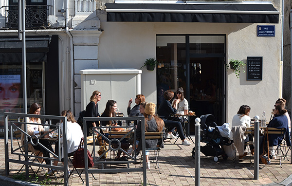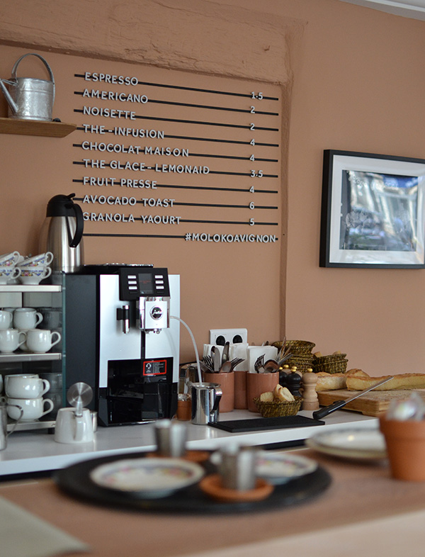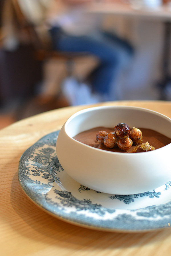 [dropcap text_color= » » background_color= »dark »]A[/dropcap]ctifs de la rue Vernet et touristes en goguette se retrouvent sur les tables de bois clair de Moloko, la nouvelle proposition pétillante du jeune chef Mathieu Desmarest. Un zeste de déco scandinave, une large dose de bonne humeur en salle grâce à la souriante Delphine, des assiettes équilibrées et généreuses imaginées avec des produits locaux par Mathieu et Bertrand (son second) : voilà un lieu à l’équilibre. Petit-déjeuner, déjeuner, plat en direct ou entrée puis dessert, petit café en passant, ici, faites comme bon vous semble de huit à seize heures. Une seule contrainte : allez-y tôt ! La salle n’est pas grande et il serait dommage de passer à côté d’un plat du jour ou d’un mémorable dessert comme cette mousse au chocolat, avec des noisettes caramélisées qui viennent donner du croustillant à cette douceur légère comme un nuage. Ne manquez pas le thé noir Chéri-chéri, imaginé spécialement pour cette adresse pleine d’amour !