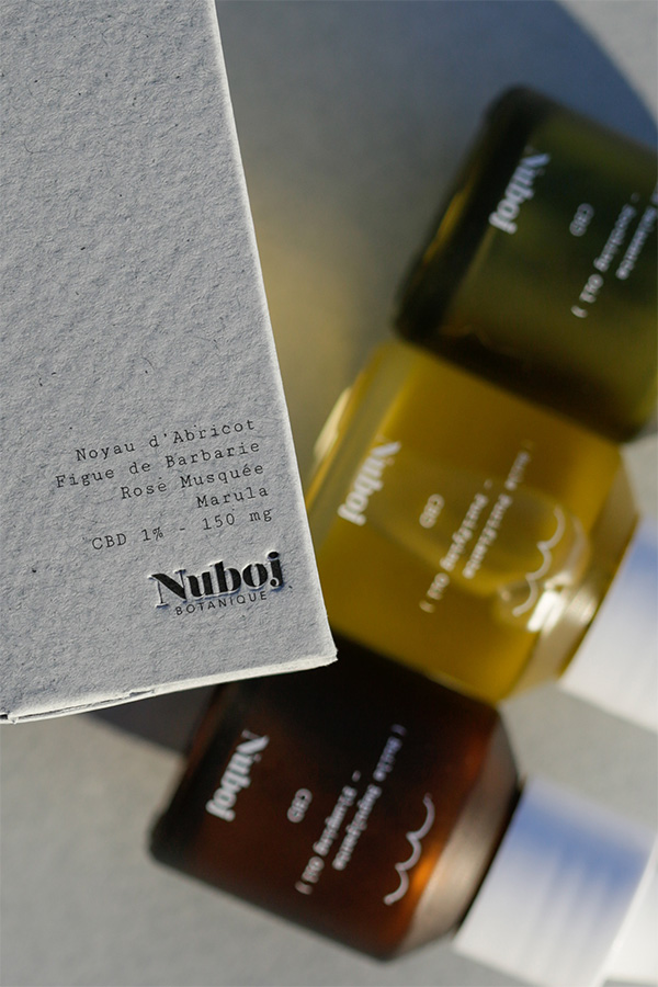 [dropcap text_color= » » background_color= »dark »]I[/dropcap]maginé et créé à Marseille, Nuboj s’impose sur le marché cosmétique grâce à une gamme de produits novateurs et naturels, sans substances chimiques inutiles. L’idée est de réveiller la routine beauté, de faire du bien à la peau et de préserver l’écosystème en intégrant dans leurs huiles sèches des ingrédients botaniques issus d’exploitations végétales responsables. Ainsi venu le temps d’explorer la plante de Chanvre (Cannabis Sativa L) désormais reconnue pour ses vertus apaisantes, anti-oxydantes et anti-âge. Bien entendu, le taux de THC est inférieur au taux maximal légal autorisé. Pas de panique, vous ne serez as accusée d’usage de stupéfiants… Nuboj propose une gamme « gouttes » (huiles : purifiante, repulpante et relaxante) et une gamme « solides » (savons : exfoliant et apaisant, ainsi qu’un shampoing solide). Outre un packaging ultra chic et élégant, vraiment canon, on est surprises et satisfaites de l’efficacité de ses produits élaborés à base de cannabis. Nuboj, le soin décalé…
