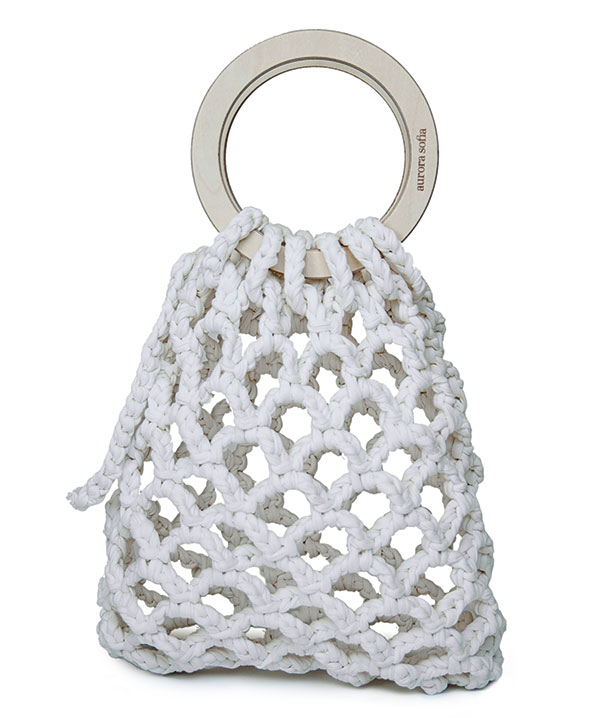Sac en crochet, tricoté à la main avec poignées en bois, 125€ www.aurorasofia.com