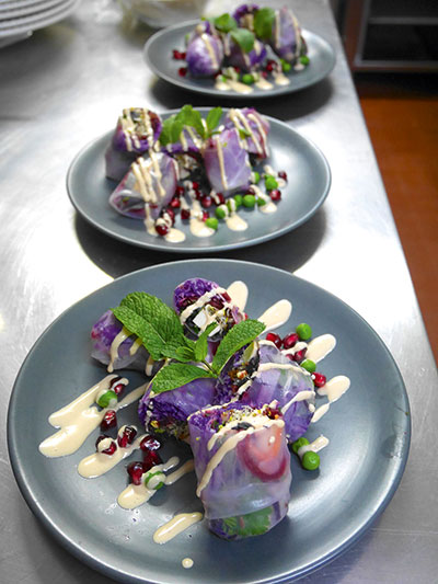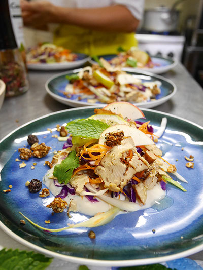 [dropcap text_color= » » background_color= »dark »]A[/dropcap]riane et Julienne rayonnent. Leur sourire est fantastique. Ces deux coucous empruntent les cuisines des copains restaurateurs ou investissent des lieux insolites pour imaginer à quatre mains de sains repas végétaux. Tout est fête des sens dans leur cuisine. Difficile, en effet, de ne pas être convaincu qu’une nouvelle alimentation est possible devant leurs assiettes colorées et savoureuses. Changer peut-être réjouissant. Voilà ce qu’elles racontent chaque mois lors d’un pop-up végétal toujours inédit. On adore leurs petits détails qui font tout, comme le granola aux noisettes croustillantes parsemé sur les soupes, les graines germées et les pétales de fleurs sur les boulettes de légumineuses. On laisse volontiers ces deux fées nous prendre par la main pour nous entraîner vers de nouvelles saveurs. Et comme si ça ne suffisait pas déjà à nous enchanter, Ariane et Julienne consignent leurs merveilleux secrets gourmands dans un ouvrage commun. On a hâte de lire et de goûter !