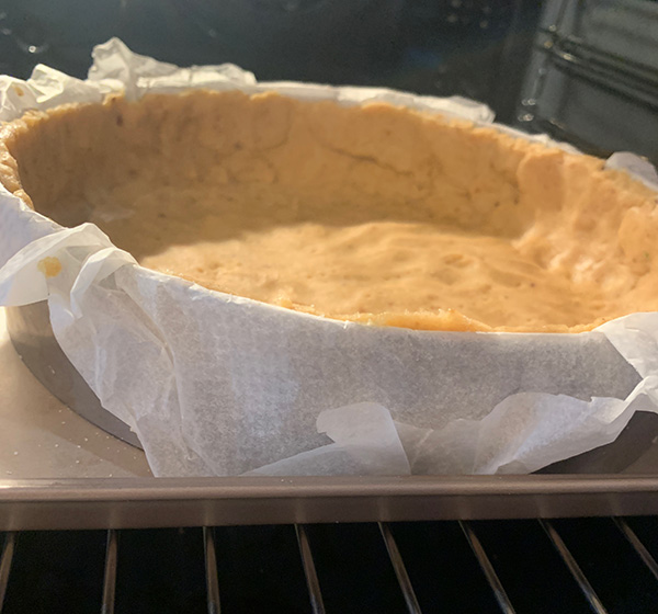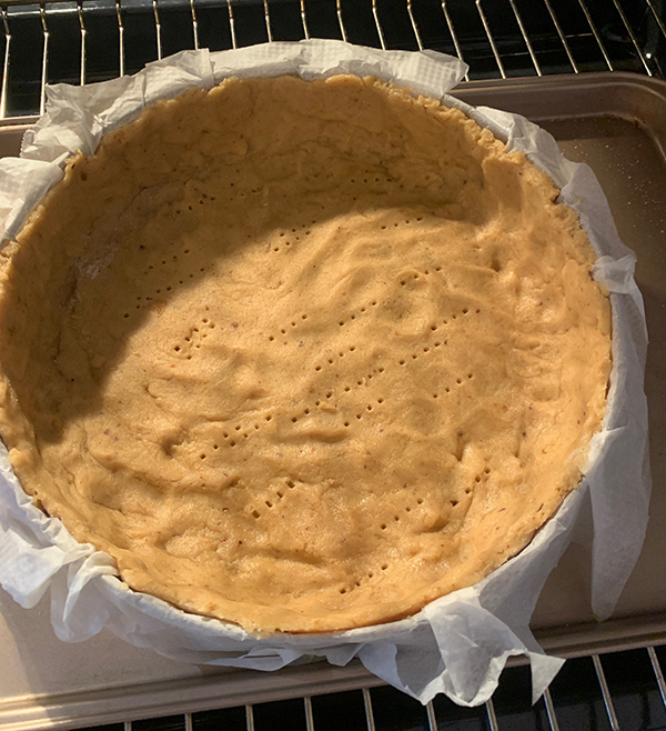 - Mettre la pâte sablée au four à 160 degrés, 15 minutes. Elle devient foncée