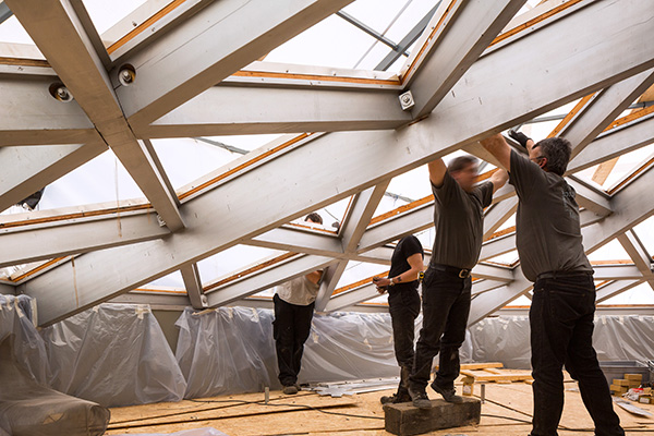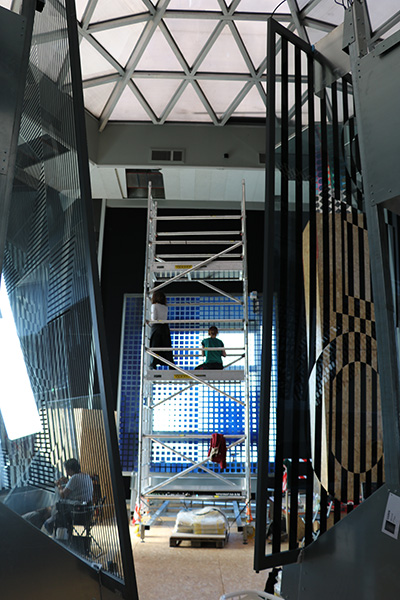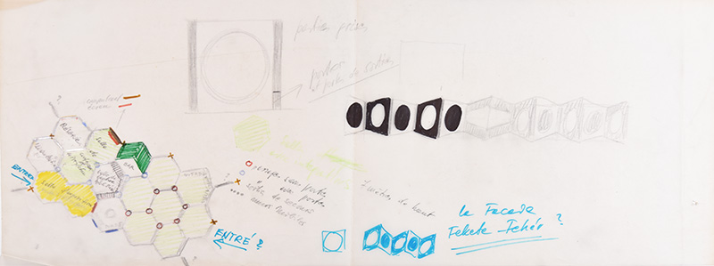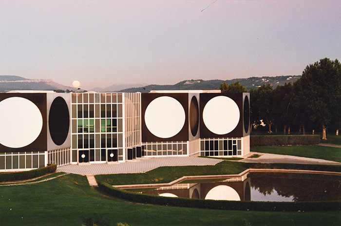 [dropcap text_color= » » background_color= »dark »]S[/dropcap]ignaux urbains incontournables, les façades binaires aux disques en noir et blanc de la fondation Vasarely s’affichent depuis les voies d’autoroute qui mènent à Aix. Ce temple de l’op art, conçu en 1973 et désormais inscrit aux Monuments historiques, a fait l’objet d’une vaste campagne de restauration qui s’est achevée en 2018. La lumière zénithale des seize alvéoles hexagonales offre à nouveau son intense clarté aux œuvres monumentales intégrées ; le bâtiment a retrouvé ses qualités plastiques et sa monochromie intérieure, voulue initialement par Victor Vasarely pour « [ménager] au visiteur qui pénètre dans l’édifice, la surprise du monde coloré qui l’attend », tandis que le parc est redevenu le « glacis vert olive » qui contraste avec les façades afin que les phénomènes visuels saisissent le visiteur dès l’arrivée à la fondation, comme le souhaitait le plasticien. Photographies et documents d’archives retracent aujourd’hui l’histoire de ce lieu d’art total et populaire, à la fois manifeste et témoignage des Trente Glorieuses. Une extension souterraine est à l’étude afin d’accueillir des expositions d’envergure qui permettront à la fondation de regagner son statut initial de lieu d’avant-garde ! Un espace à redécouvrir, en écho à la rétrospective monographique consacrée cette saison à Victor Vasarely au centre Pompidou.