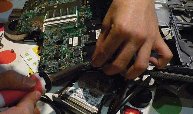 Votre grille-pain ne marche plus ? Votre fer à repasser est cassé ? Une de vos chaises est bancale ? Ne jetez pas ! Allez dans un Repair Café, on répare tout là-bas. Le tout premier a ouvert en 2009 à Amsterdam, et depuis le mouvement international des Repair Cafés coordonné par l’Association Repair Café Pays-Bas s’étend en Europe et dans le monde entier : fin 2013 il y en avait 275, un an après il y en a plus de 700 ! Les Repair Café se donnent pour mission de réintroduire la pratique courante de la réparation des objets, de transmettre le savoir-faire en matière de réparation et d’offrir des occasions de rencontres et d’échanges dans le cadre de manifestations locales ouvertes à tous. Ainsi on réduit les émissions de CO2 et on évite 200 000 kilos de déchets par an ! À notre époque, habitués à consommer et à jeter aussi vite, réparer n’est plus une chose normale, nous ne savons plus le faire, la réparation est devenue un savoir-faire précieux. D’où l’idée de réparer ensemble : outils et matériels sont disponibles à l’endroit où est organisé le Repair Café pour faire toutes les réparations possibles et imaginables. Sur place des réparateurs bénévoles sont là : électriciens, couturières, menuisiers… Les usagers participants apportent leurs objets et se mettent à l’ouvrage avec des gens spécialisés qui leur expliquent comment ça marche. À Marseille les Repair Café sont ambulants, ils se passent dans les bars, restaurants, au Point de Bascule ou à La Fabulerie, ils changent de lieux, de jours, et d’horaires pour pouvoir aller à la rencontre de tous les marseillais !