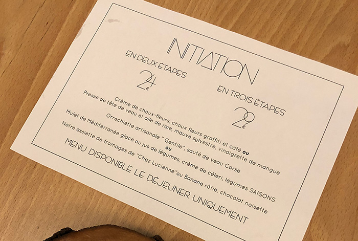 Menu uniquement le midi : en deux étapes (24 €) et en trois étapes (29 €)