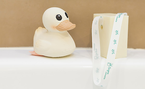 [dropcap text_color= » » background_color= »dark »]S[/dropcap]ain et simple, le concept n’est pas innovant mais plutôt attachant. Marseille, ville emblématique du savon aux multiples vertus, inspire plus d’un créatif avec la saponification. Morgane Ruggiu est une maman de trois enfants soucieuse de son environnement. Elle en avait assez de générer autant de déchets plastiques avec une consommation importante de gels douches, parfois aux ingrédients douteux. Sapo est une marque qui revendique le naturel de ses composants. Les savons, simples pains rectangulaires, sont traversés d’un ruban coloré et résistant, qui permet de les suspendre pour qu’ils sèchent après utilisation, qui permet aussi de les différencier. Les savons étant en plus affublés de noms rigolos comme « Gustave se lave », ou « Hercule fait des bulles » en fonction de leur parfum (huiles essentielles de lavande, citron, ou d’huile d’olive), chacun peut vraiment s’approprier et identifier le sien. Morgane a aussi imaginé une petite pochette en tissu recyclé avec une doublure étanche pour balader son savon en week-end (quand l’époque le permet)… on l’appelle la « sapochette ». Il y a aussi de charmants petits gants de toilette fabriqués dans un même esprit.