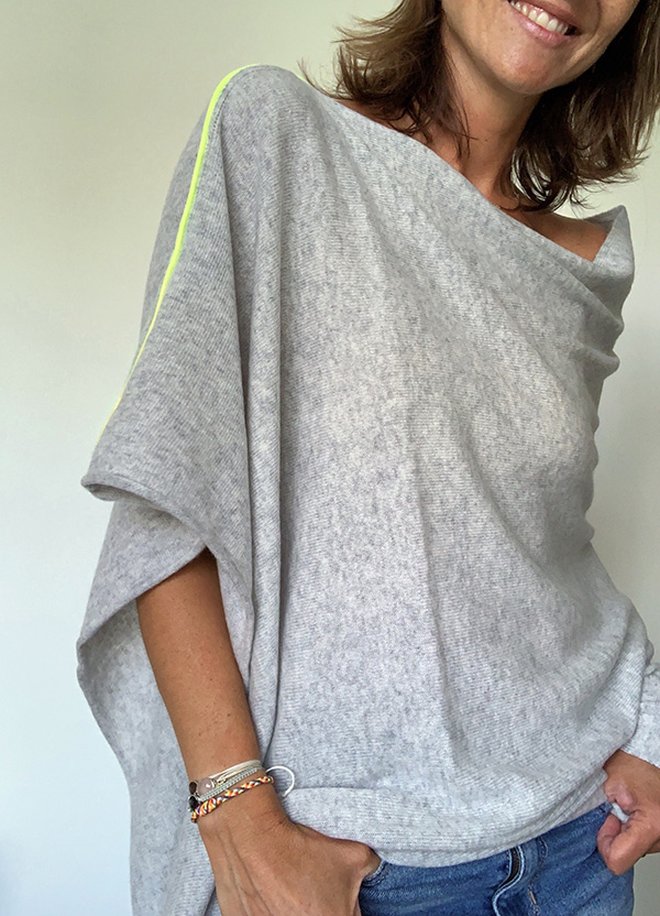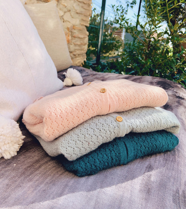[dropcap text_color= » » background_color= »dark »]I[/dropcap]ndispensable pièce du dressing d’été, le petit cachemire se déniche chez Teeny Spark, une jeune marque créée en 2015 par Sophie du Chéné. Marseillaise expatriée un temps à Shanghai, elle découvre là-bas ce lainage délicat aux merveilleuses vertus réconfortantes. Au départ, elle fabrique, pour elle-même et ses trois filles, de légers ponchos qu’elle customise avec des motifs pailletés. Puis, forte de son petit succès, elle se laisse tenter par l’aventure de l’entreprise. Sophie se contente de créer deux collections par an, toujours des séries limitées, avec en prime la réédition de quelques-unes de ses pièces déjà iconiques, ainsi que des accessoires. Pour simplifier la création et le choix, ses modèles sont toujours en taille unique. Aux ponchos, elle a ajouté des gilets oversize et même une marinière. On aime sa maille ajourée un brin rétro, le petit passepoil coloré sur l’épaule ou encore les dos dénudés de ses pulls col V. Découvrez-les sur Instagram @teenyspark, première vitrine sur le monde où mère et filles jouent les mannequins. De jolis clichés, simples mais toujours stylés, dans lesquels Sophie affiche son goût des beaux basiques chics.