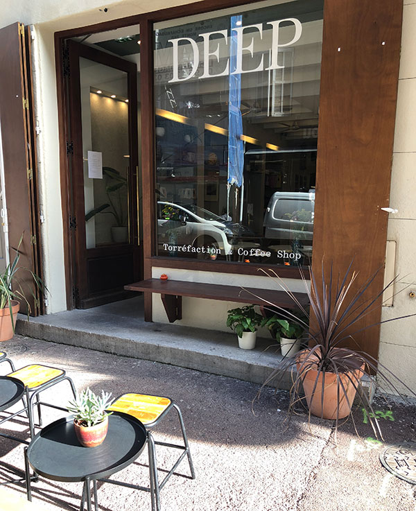 [dropcap text_color= » » background_color= »dark »]O[/dropcap]uvert en avril 2018, à deux pas du Vieux-Port, Deep n’est pas qu’un simple coffee shop… Dans ce qui est également un atelier de torréfaction, Tony, l’un des maîtres des lieux, torréfie son propre café vert (de la couleur du grain). Véritable lieu de vie, la culture y est omniprésente. Baroudeur et producteur de musique (notamment à Brooklyn où il a vécu), Tony nous transmet ses passions par le biais de livres de photographies et d’art visuel, qu’il met à disposition, de collaborations tendances (sweat, t-shirt et création d’un café spécial notamment avec la marque Toka-Toka)… Tout en profitant d’une sélection musicale pointue, on s’installe ici pour un café, une pâtisserie vegan (Oh Faon !), mais aussi un déjeuner. L’univers culturel de Deep est fascinant, son café nous transporte !