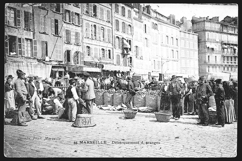 C’est en 1840, soit il y a près de deux siècles, que le concept de marché de gros naît à Marseille. En ce temps-là, celles que l’on surnommait les « partisanes » constituaient les véritables rouages du marché : commissionnaires des opérations d’achat-vente, elles assuraient près de 65 % du trafic de marchandises. À l’époque, le marché de gros de Marseille est encore installé au cours Saint-Louis, avant d’être transféré boulevard Dugommier, puis rue du Musée (après un passage boulevard du Muy). En 1860, le cours Julien, aujourd’hui davantage connu pour ses cafés et ses artistes que pour ses tréteaux et autres étals, est choisi pour regrouper l’ensemble des marchés existants dans la ville (différenciés selon les produits vendus) en un seul : le marché central d’approvisionnement de Marseille. Dans les années 1870, le cours compte près de 21 criées et devient le carrefour méridional de l’échange des marchandises en provenance des quatre coins de la France… et du monde.