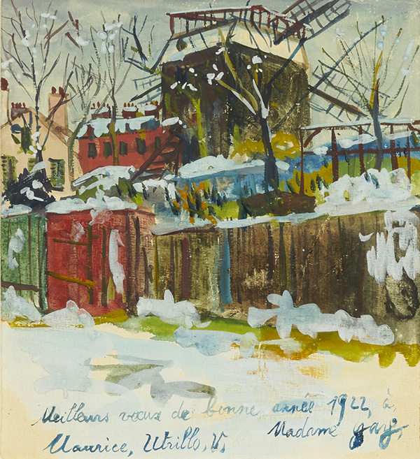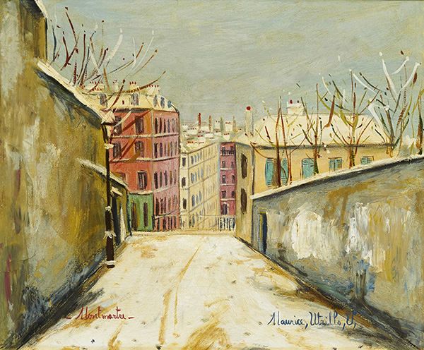 [dropcap text_color= » » background_color= »gray »]D[/dropcap]ans l’histoire de la peinture française, Maurice Utrillo (1883-1955) occupe une place singulière. Ni impressionniste ni fauve ni naïf, mais un peu de tout cela à la fois, il est le peintre emblématique de la bohème montmartroise, lié pour l’éternité à Paris et à l’école du même nom. Il a pourtant posé son chevalet sous d’autres cieux, d’autres contrées au cours de sa carrière. C’est ce que nous révèle cette coquette exposition – une première à Marseille – qu’organisent, dans leur galerie, Giulia et Alexis Pentcheff. Avec le concours du comité Utrillo et de divers collectionneurs privés, ils ont pu réunir une quarantaine de ses huiles sur toile et de ses travaux sur papier. Comme le soulignent leurs fiches techniques, la plupart ont fait l’objet d’expositions dans le monde entier, en particulier au Japon où Utrillo est très prisé. Un parcours chronologique prend forme qui retrace trois décennies de création. Avec lui nous cheminons dans le Paris populaire du début du XXème siècle, avec ses églises, ses usines et ses cabarets (comme Le Lapin Agile plusieurs fois représenté). Mais nous nous arrêtons aussi devant cette belle Eglise des Saintes-Maries de la mer (1931) ou, encore plus au sud, face à cette austère Rue à Corte (1913-14). Si l’hiver est une saison qu’Utrillo aimait à peindre, elle ne lui interdisait pas l’usage des tons vifs, comme dans cette jolie miniature dédicacée de 1922, Moulin de la Galette sous la neige à Montmartre. Précisons, pour terminer, que toutes les œuvres exposées sont à vendre et qu’elles ont été rigoureusement expertisées.